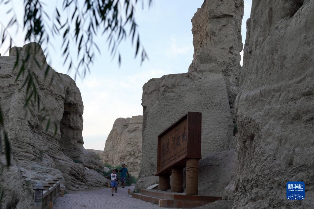 8月11日,游客游覽交河故城。