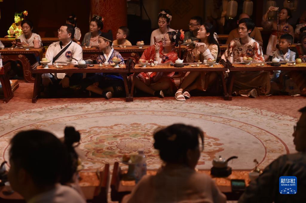 8月11日晚,游人在洛陽應天門遺址博物館內觀賞演出。