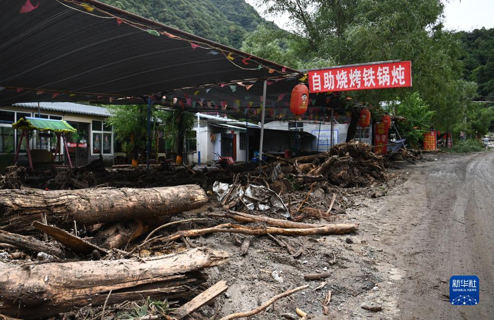 這是8月12日拍攝的西安市長安區灤鎮街道喂子坪村雞窩子組山洪泥石流災害現場。