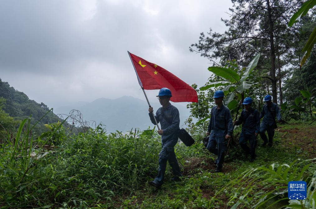 8月10日,“國旗巡線班”在山路上行走。