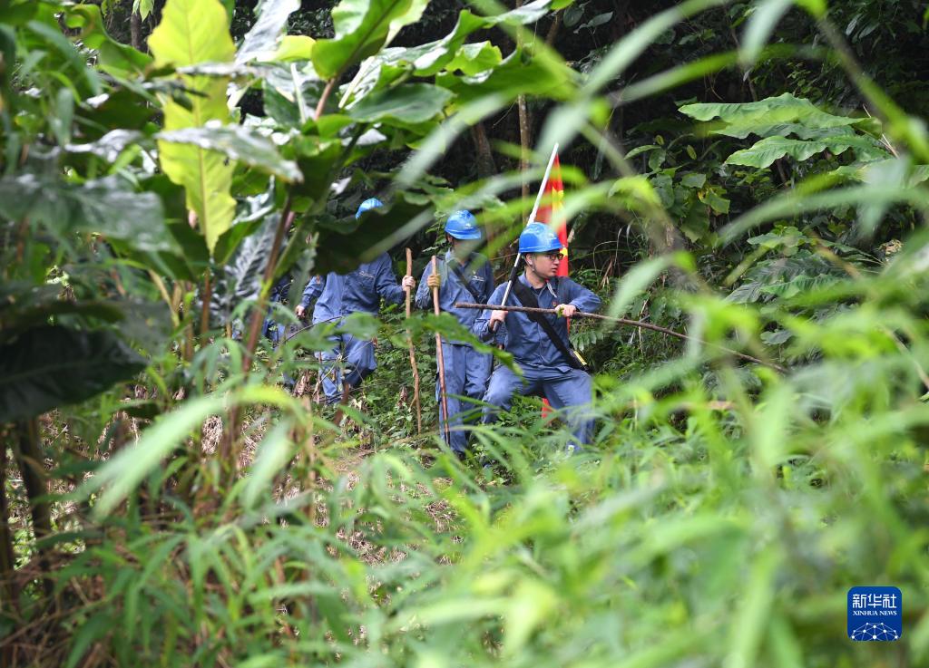 “國旗巡線班”在巡線路上(8月10日攝)。新華社記者 周華 攝