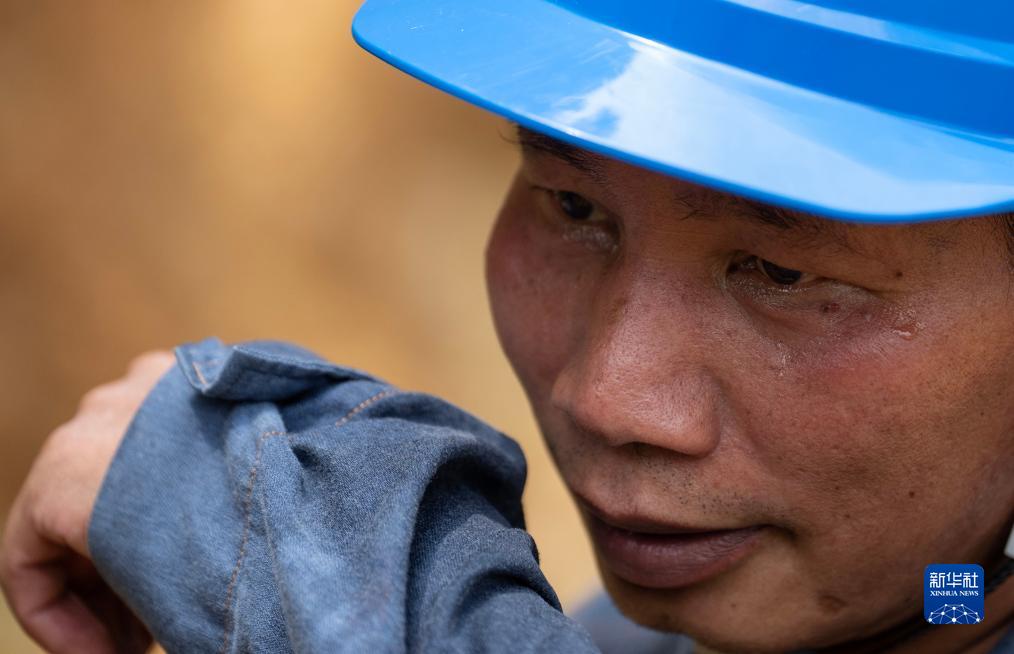 8月10日,溫賢文用袖子擦去臉上的汗水。新華社記者 費茂華 攝
