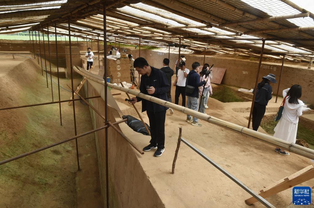 8月10日,參加集中采訪的媒體記者在位于河南省安陽市的殷墟王陵遺址參觀采訪。