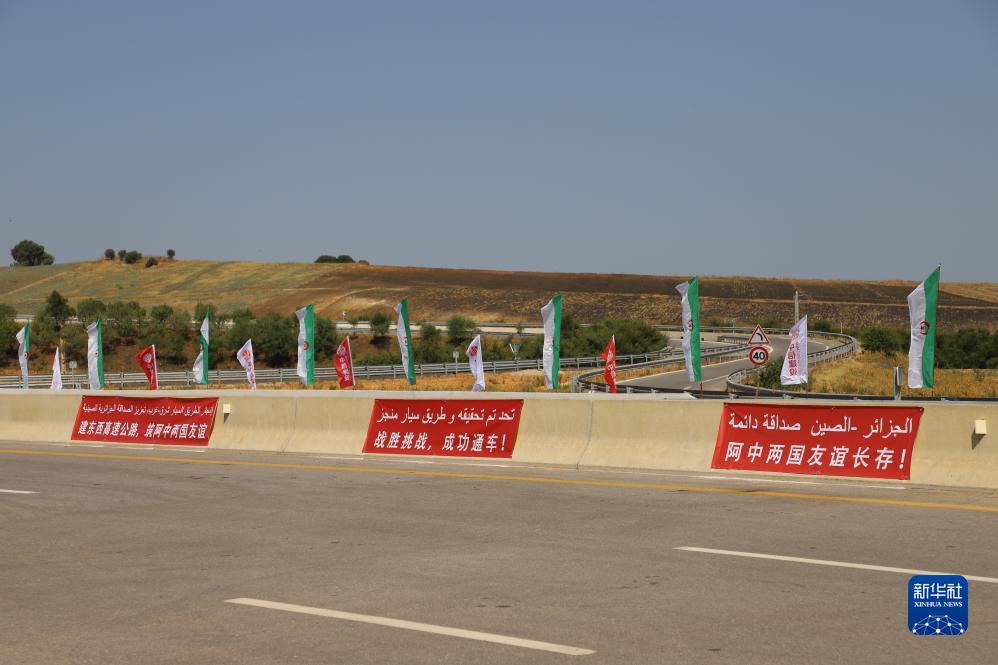 這是8月12日在阿爾及利亞塔夫省拍攝的即將通車的阿爾及利亞東西高速公路東標(biāo)段84公里項(xiàng)目。