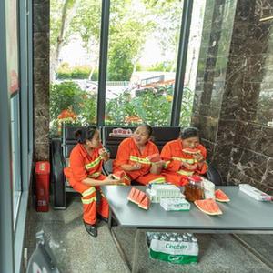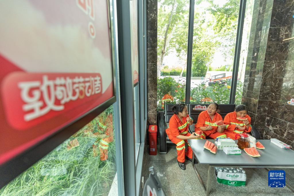 連日來,重慶市持續高溫。重慶市沙坪壩區建立的“勞動者港灣”成為許多戶外勞動者歇腳避暑的去處。