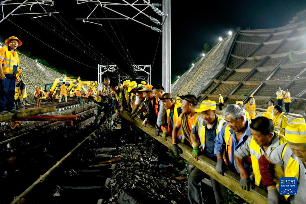 8月12日,中鐵十局的工作人員在濟鄭高鐵山東段大廟屯線路所42號道岔I級施工。
