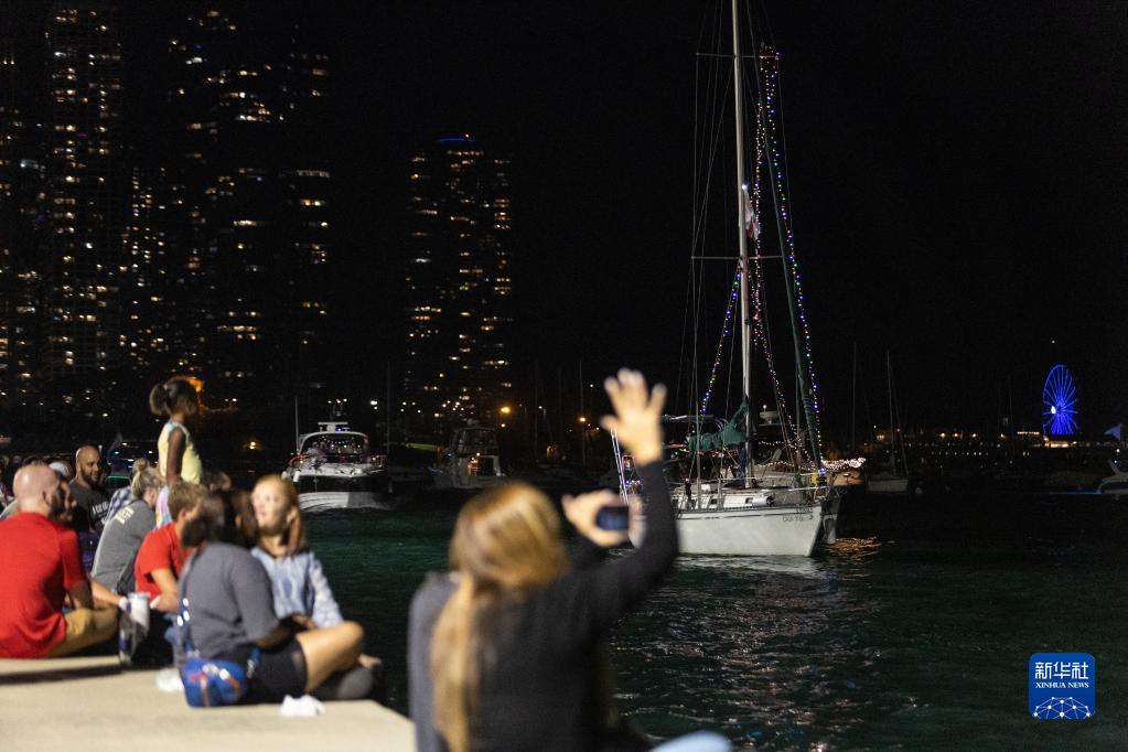 這是8月12日在芝加哥拍攝的“威尼斯游船秀”現場。