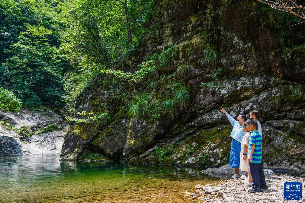 8月13日,在清涼峰野外博物館,環保志愿者向小朋友講解生態環保知識。