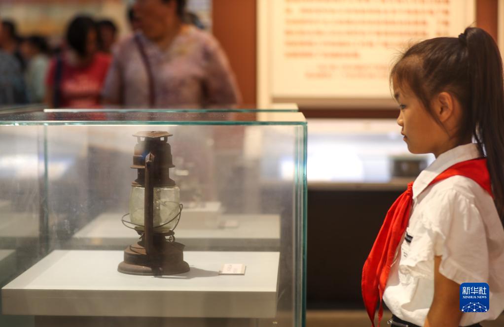 8月13日,一名小朋友在遵義會議陳列館參觀。