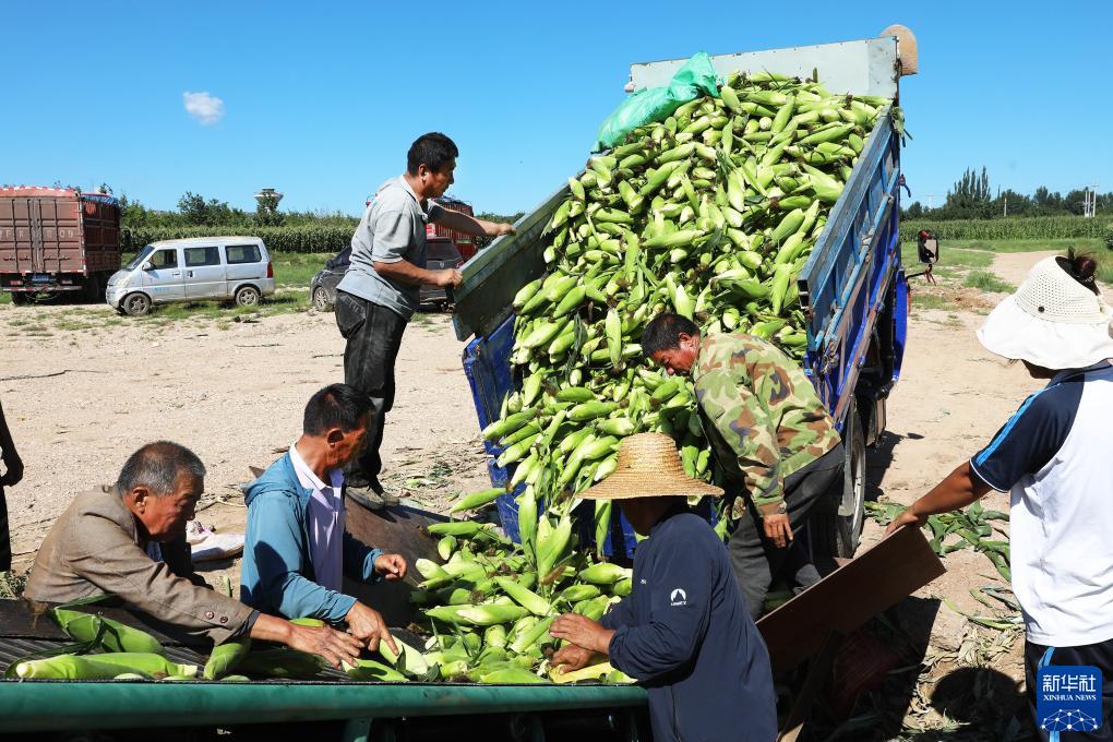 8月13日,在張家口市萬(wàn)全區(qū)盆窯村鮮食玉米種植基地,農(nóng)民收獲鮮食玉米。