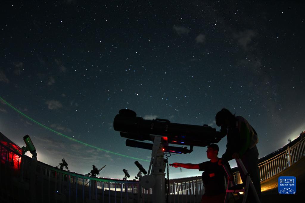 天文愛好者在哈巴湖天文臺觀看星空(8月13日攝)。