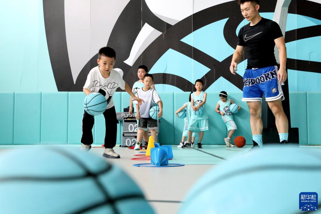 8月13日,青少年在山東省青島市西海岸新區(qū)一籃球訓(xùn)練場練習(xí)。