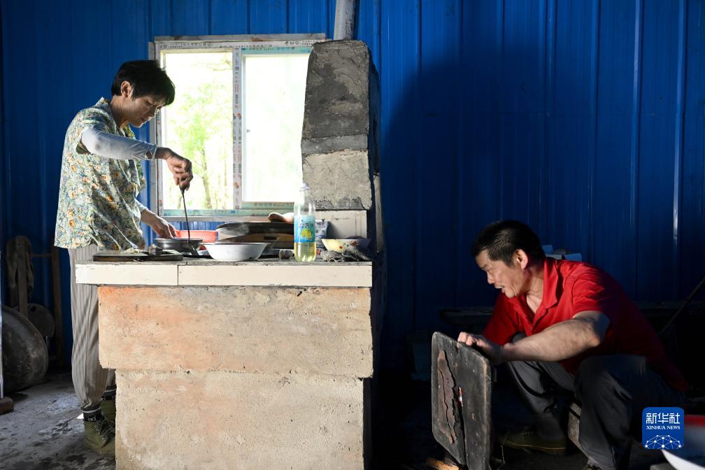 8月12日,在安徽天馬國家級自然保護區天堂寨管理站的一處管護站,王克東和高開玉生火做飯。每年10月1日至次年4月30日的防火關鍵期,王克東夫妻倆會在這里長期居住。