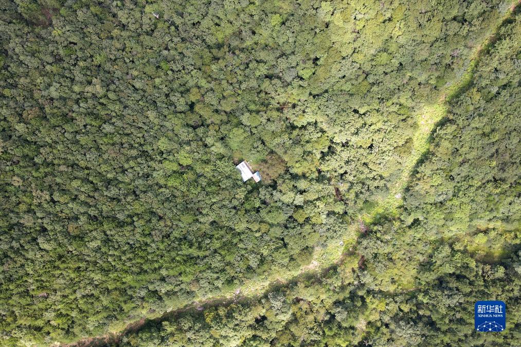 這是8月12日拍攝的安徽天馬國家級自然保護區(qū)天堂寨管理站的一處管護站。每年10月1日至次年4月30日的防火關鍵期,王克東夫妻倆會在這里長期居住(無人機照片)。