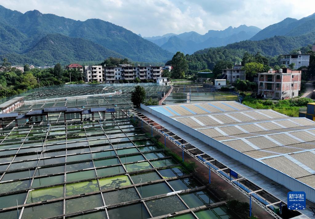 這是無人機航拍的福州市閩侯縣南通鎮古城村春園鯉生態養殖場全景(8月9日攝,無人機照片)。