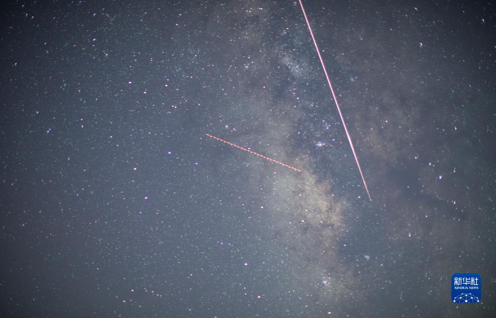 在四川省三臺(tái)縣魯班鎮(zhèn),英仙座流星雨劃過(guò)夜空(8月13日攝)。