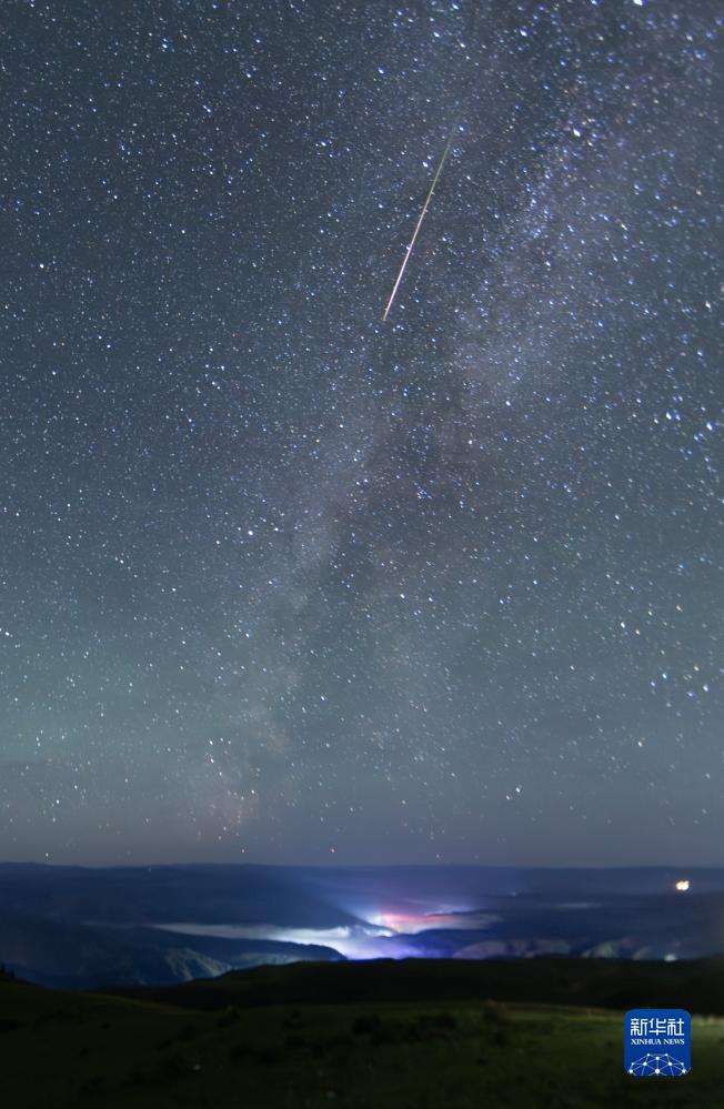 在四川省紅原縣安曲鎮(zhèn),英仙座流星雨劃過夜空(8月13日攝)。