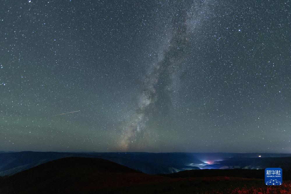 在四川省紅原縣安曲鎮,英仙座流星雨劃過夜空(8月13日攝)。