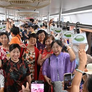 從8月8日起,北京地鐵一號線開行“時光列車”,6節(jié)車廂采用不同時代涂裝風(fēng)格。特別是綠色座椅、車廂頂部風(fēng)扇等元素,帶領(lǐng)乘客瞬間“穿越”,吸引人們紛紛打卡拍照。“時光列車”運(yùn)行時間是工作日14點(diǎn)至15點(diǎn),運(yùn)行區(qū)間是地鐵古城站至地鐵復(fù)興門站。
