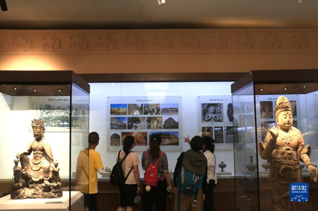 8月6日,游客在甘肅省敦煌市陽(yáng)關(guān)景區(qū)內(nèi)的博物館參觀。