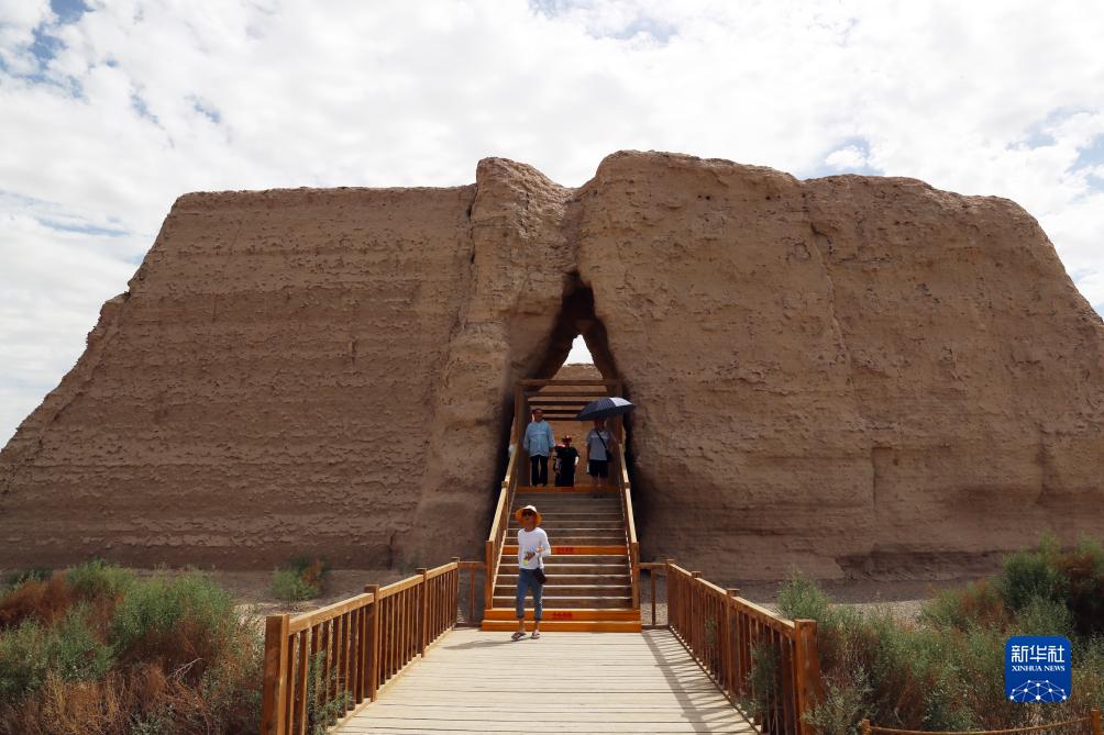 8月13日,游客在甘肅省敦煌市玉門關景區游覽。