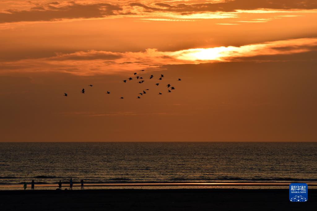 江蘇省啟東市黃金海灘景區(qū)日出景色(2023年7月25日攝)。