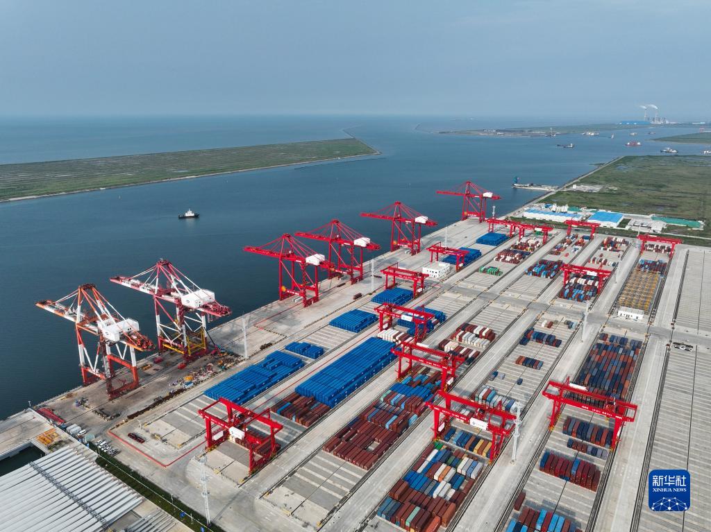 江蘇啟東呂四港碼頭(2023年7月24日攝,無人機照片)。