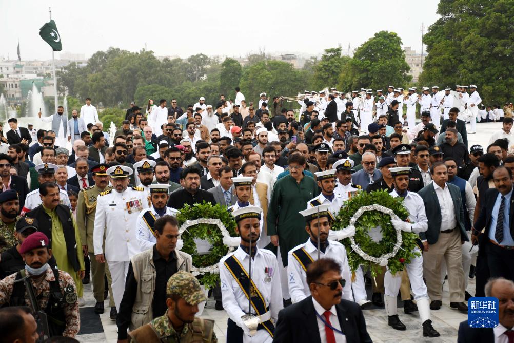 8月14日,在巴基斯坦卡拉奇,人們在國父穆罕默德·阿里·真納的陵墓前參加獨立76周年慶祝活動。
