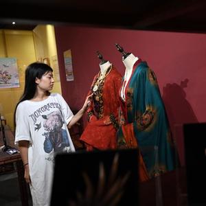 8月14日,觀眾參觀影視作品《為有暗香來》中的戲服。