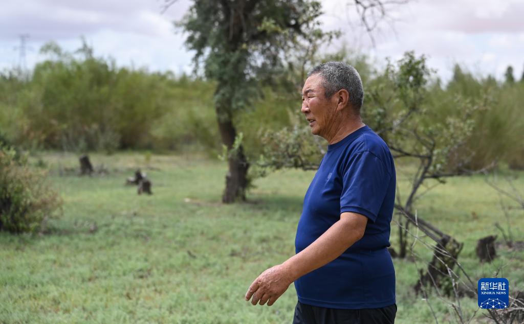 7月21日,內(nèi)蒙古杭錦旗道圖嘎查原支部書記陳寧布在自家草場上行走。