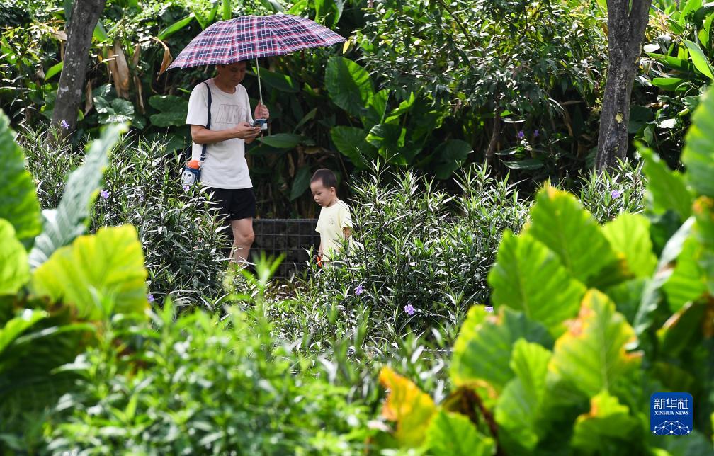 市民在海口美舍河鳳翔濕地公園內游覽(8月2日攝)。