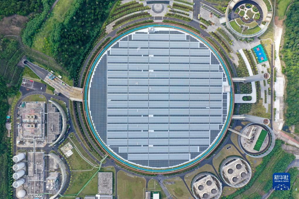 深圳龍崗能源生態園占地面積約54萬平方米,日處理生活垃圾5000噸,是目前國內單體建設規模最大的超大型生活垃圾焚燒處理設施,園區內配套建設科普教育基地及餐飲服務,未來將對市民開放參觀(無人機照片,8月8日攝)。