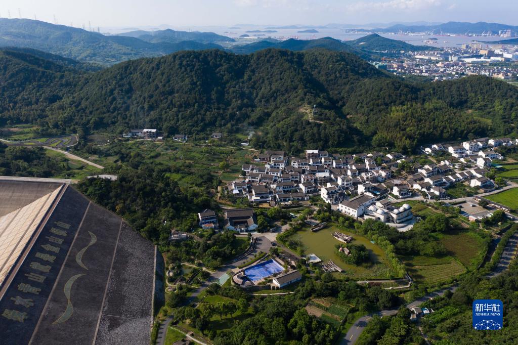 空中俯瞰舟山市定海區新建村(8月7日攝,無人機照片)。新建村被評為中國最美休閑鄉村、國家級美麗宜居示范村、全國首批森林鄉村、全國鄉村旅游重點村等榮譽稱號。