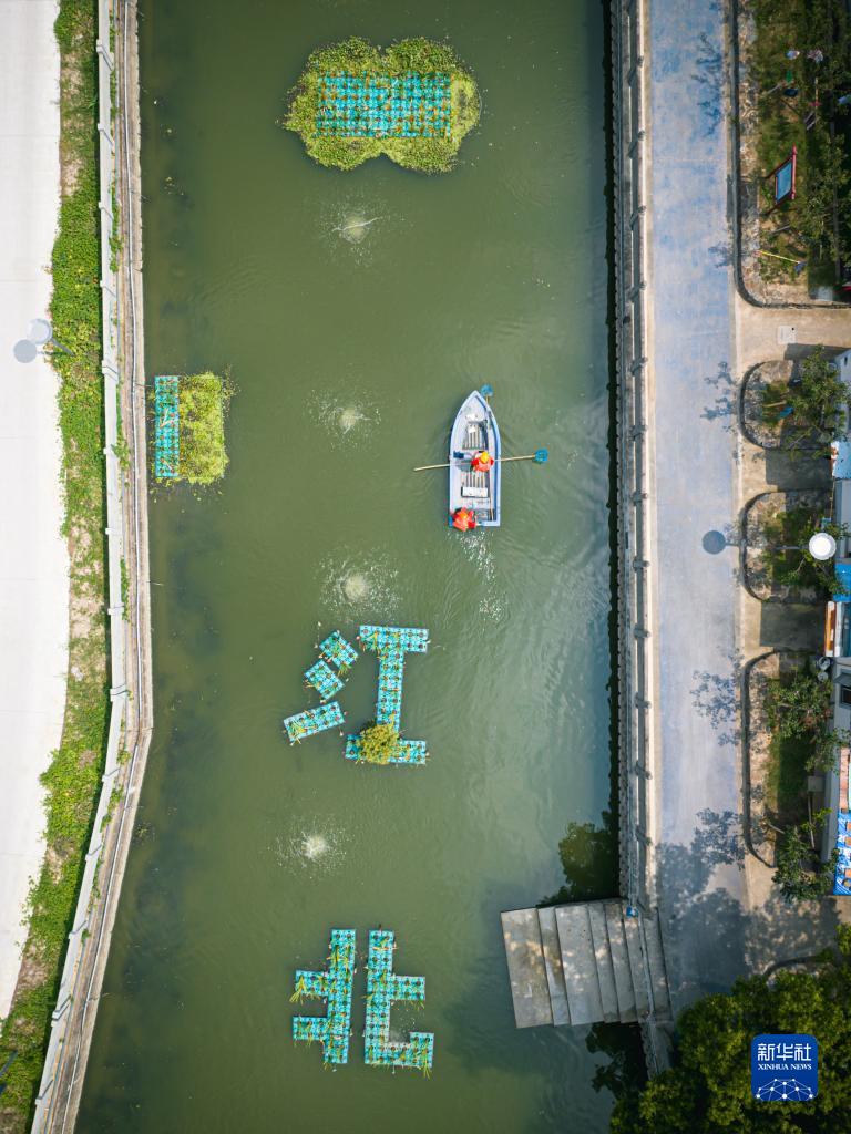 工作人員駕駛小船在寧波市江北區(qū)西大河上清理水面(8月11日攝)。近年來(lái),寧波市江北區(qū)通過(guò)堤岸整治、河道清淤、建立微循環(huán)系統(tǒng)等方式,提高了西大河的水體自凈能力和水生態(tài)環(huán)境。