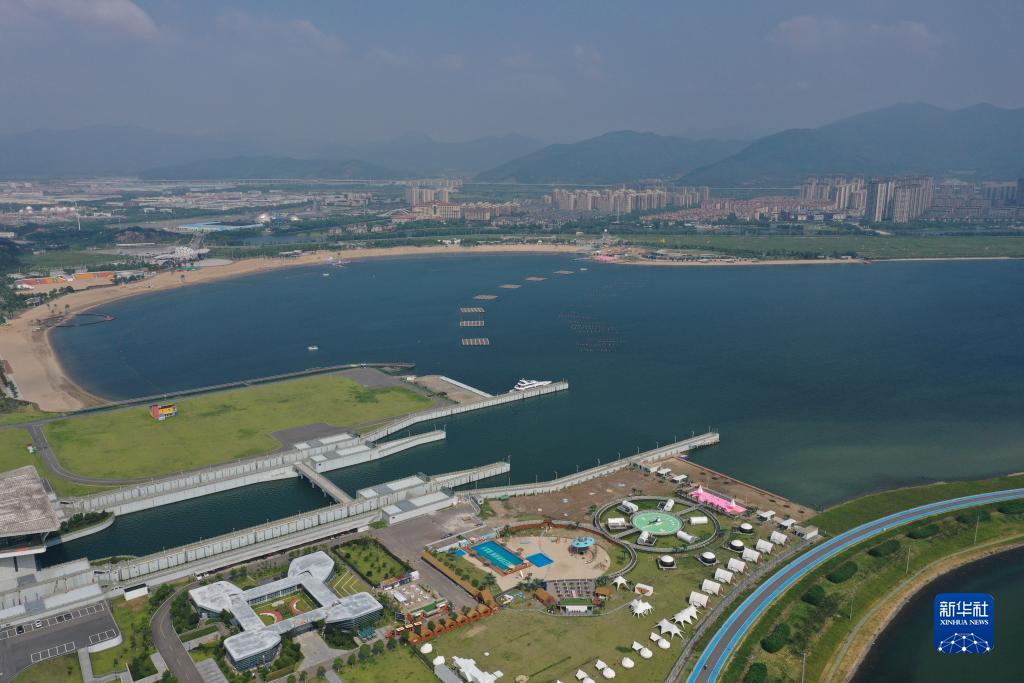 鳥(niǎo)瞰梅山灣沙灘公園(8月9日攝,無(wú)人機(jī)照片)。寧波市北侖區(qū)通過(guò)“陸海統(tǒng)籌、河海兼顧、上下聯(lián)動(dòng)、智慧藍(lán)碳”治理新模式,累計(jì)投入21億元,使曾經(jīng)“海水常年混濁,泥路和荒灘遍布”的梅山灣變?yōu)橐黄{(lán)色海灣,用“金山銀山”反哺“綠水青山”。