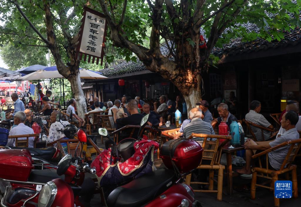 在成都市雙流區彭鎮楊柳河畔,有一個已有百年歷史被稱為觀音閣的老茶館。老茶館的得名,來源于民間神話,相傳因茶館里供奉的觀音菩薩保佑而得以在百年前的一場大火中幸存。青磚加木質結構的老茶館斑駁破舊,木柱木梁灰青小瓦,脫落的石灰墻中可見原先打底的竹籬。正中屋檐處一扇天窗和兩頭的進門處能透進些許自然光線,使屋里顯得較為昏暗。茶館的地面保持著原先的硬土,久而久之已經坑坑點點形成錯落不平的紋理。老茶館現已被列為成都第五批歷史建筑保護名錄。現任店主李強,成都雙流區人。