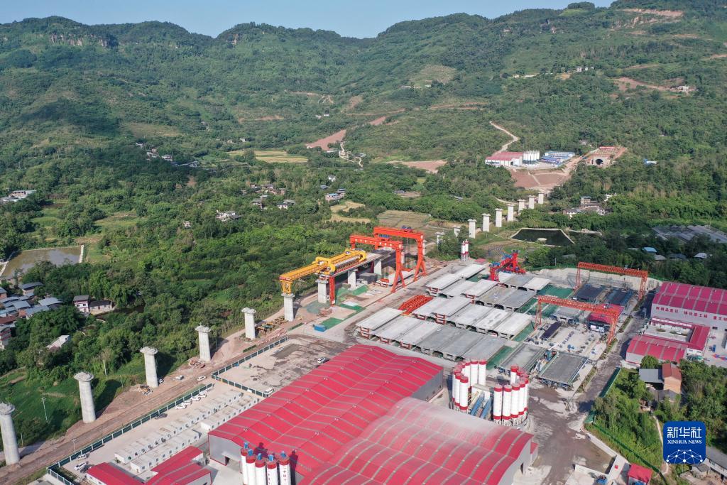 這是8月15日拍攝的渝湘高鐵重慶段建設現場(無人機照片)。