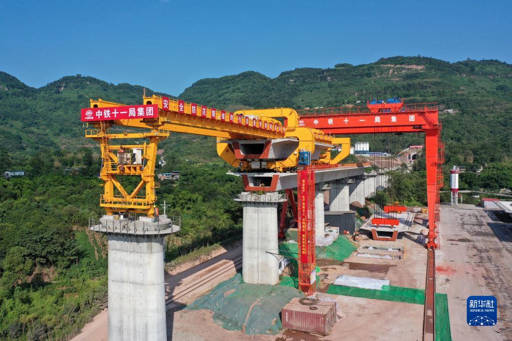 8月15日,在中鐵十一局集團承建的渝湘高鐵重慶段建設現(xiàn)場,隨著作業(yè)人員將首榀重790.25噸的大型箱梁精準架設在箭桿灣雙線特大橋19號至20號橋墩上,標志著渝湘高鐵重慶段箱梁架設全面展開。 渝湘高鐵重慶至黔江段是國家中長期鐵路網(wǎng)規(guī)劃“八縱八橫”中廈渝通道的重要組成部分,從重慶站引出,途經(jīng)渝中、南岸、巴南、南川、武隆、彭水等區(qū)縣,止于重慶市黔江區(qū),正線全長269.521公里,設計時速350公里。據(jù)悉,渝黔鐵路建成通車后,與黔常鐵路、渝廈高鐵常德至長沙段連接,成為成渝城市群、長江中游城市群、海西城市群間高速客運交流的通道,將有效填補渝東南武陵山區(qū)城鎮(zhèn)群沒有高鐵的空白,與重慶主城區(qū)實現(xiàn)1小時通達,成渝地區(qū)雙城經(jīng)濟圈與長江中游城市群、海峽西岸城市群的快捷通道全面打通,對拉動投資、發(fā)展產(chǎn)業(yè)、帶動就業(yè)、助推鄉(xiāng)村振興、助推西部地區(qū)發(fā)展具有重大意義。