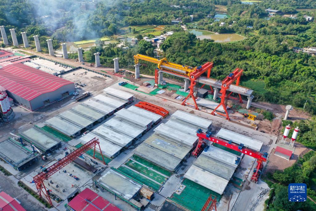 8月15日,在中鐵十一局集團承建的渝湘高鐵重慶段建設現場,隨著作業人員將首榀重790.25噸的大型箱梁精準架設在箭桿灣雙線特大橋19號至20號橋墩上,標志著渝湘高鐵重慶段箱梁架設全面展開。 渝湘高鐵重慶至黔江段是國家中長期鐵路網規劃“八縱八橫”中廈渝通道的重要組成部分,從重慶站引出,途經渝中、南岸、巴南、南川、武隆、彭水等區縣,止于重慶市黔江區,正線全長269.521公里,設計時速350公里。據悉,渝黔鐵路建成通車后,與黔常鐵路、渝廈高鐵常德至長沙段連接,成為成渝城市群、長江中游城市群、海西城市群間高速客運交流的通道,將有效填補渝東南武陵山區城鎮群沒有高鐵的空白,與重慶主城區實現1小時通達,成渝地區雙城經濟圈與長江中游城市群、海峽西岸城市群的快捷通道全面打通,對拉動投資、發展產業、帶動就業、助推鄉村振興、助推西部地區發展具有重大意義。