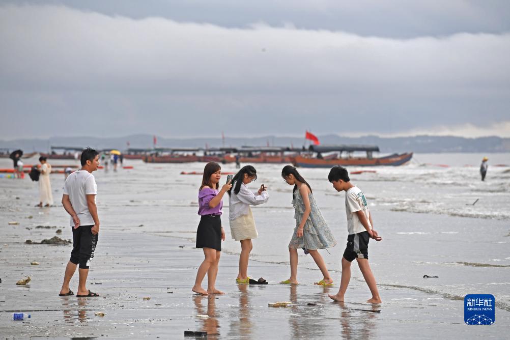 8月15日,游客在海灘上玩耍。