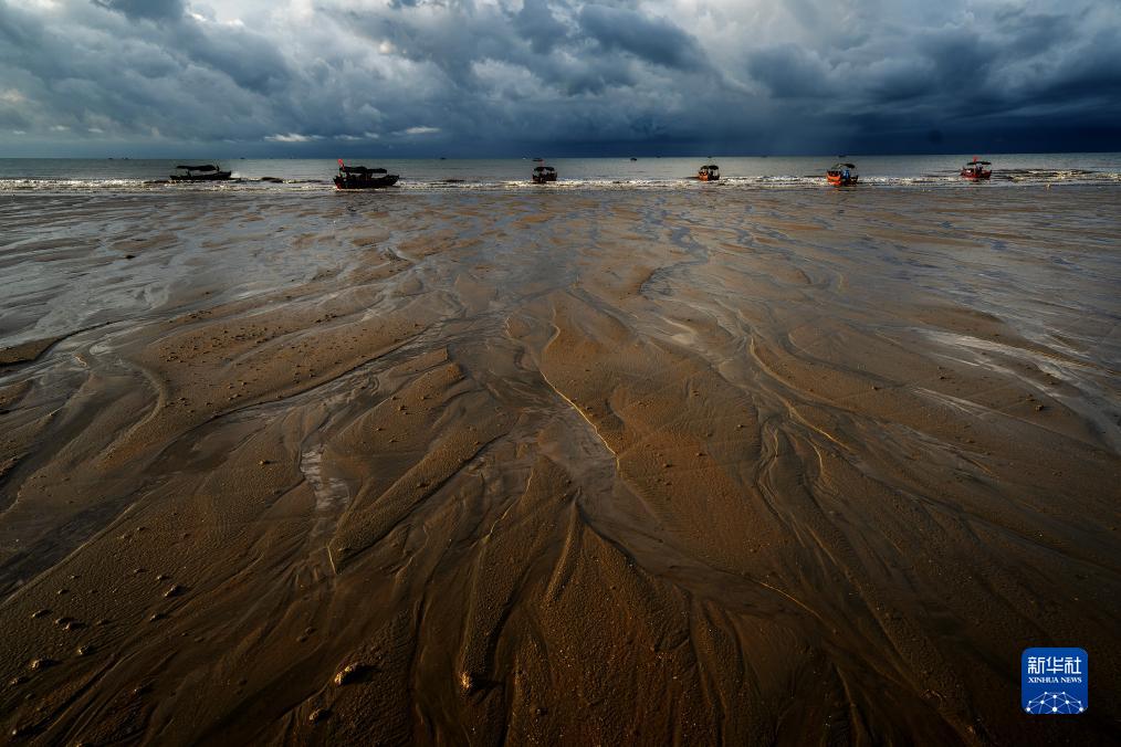 清晨,迅速變化的光線和云彩、來來往往的游客、聞雞起舞的漁人以及奔騰不息的波浪,在廣西東興的金灘上一起奏響了一首美妙的樂曲。