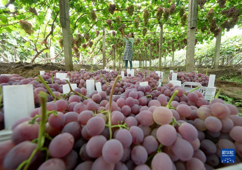 8月15日,盧龍縣蛤泊鎮鮑子溝村農民在果園采摘葡萄。