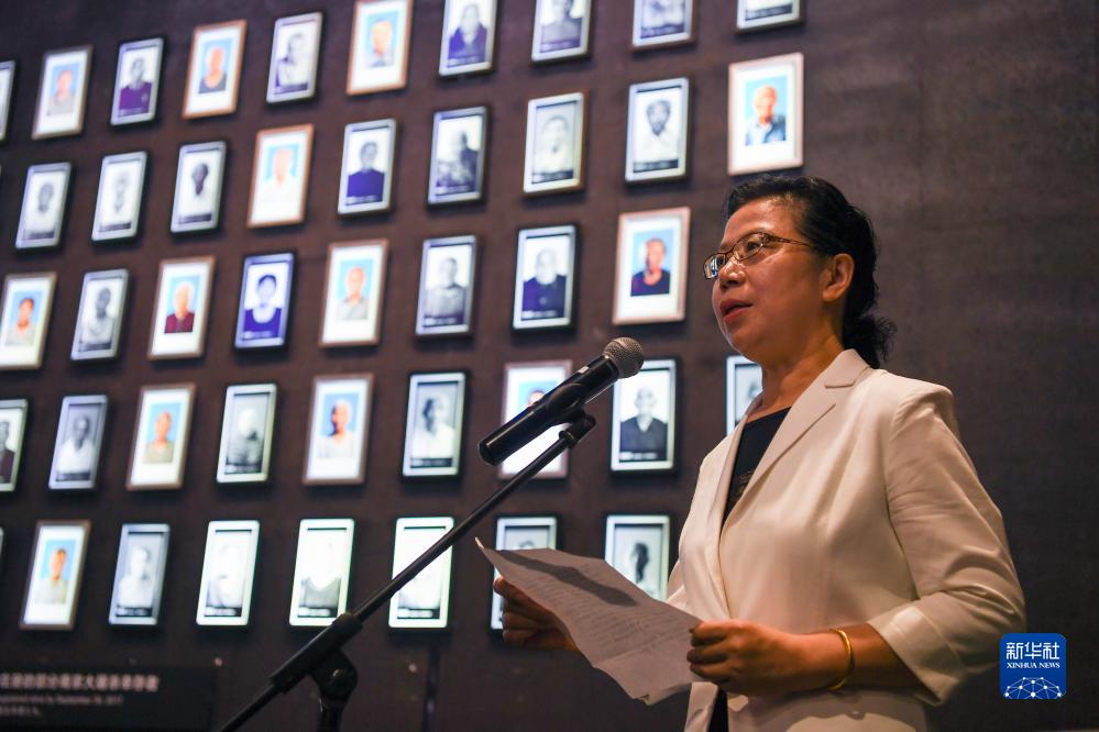 8月15日,南京大屠殺幸存者后代代表、南京大屠殺歷史記憶傳承人曹玉莉在活動中發言。