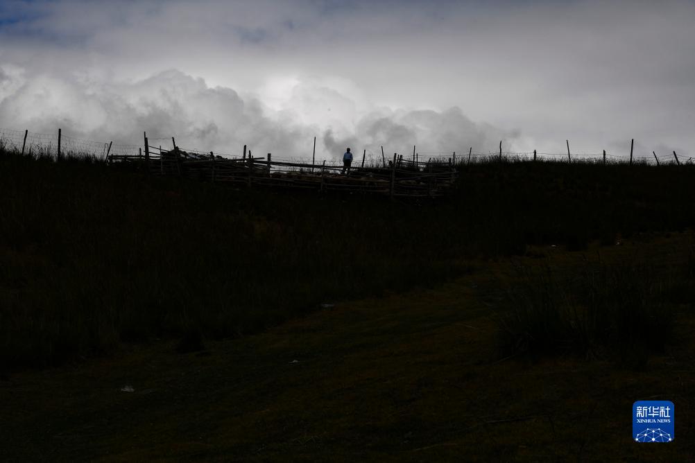 牧民在索爾巴斯陶牧場上清點羊群(8月13日攝)。