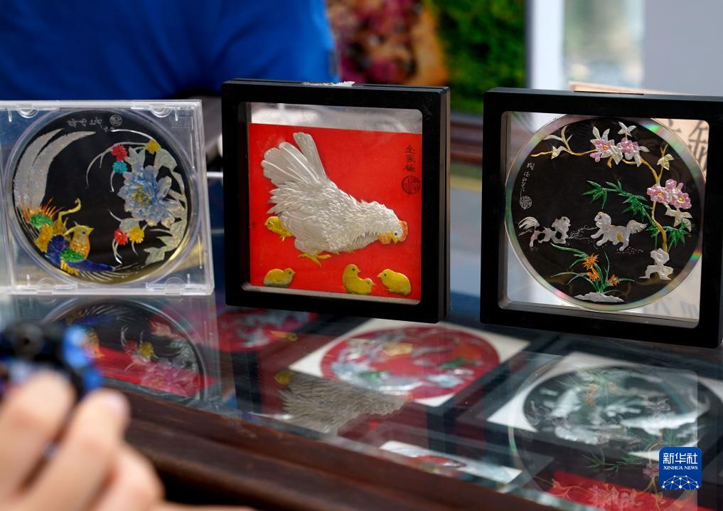 藝術(shù)節(jié)現(xiàn)場展示的用易拉罐創(chuàng)作的環(huán)保手工作品(8月15日攝)。