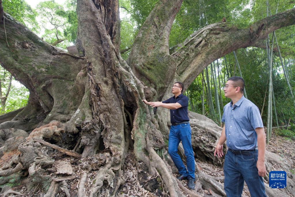 2023年6月4日,福州市林業局工作人員在永泰縣查看古樹名木保護情況。