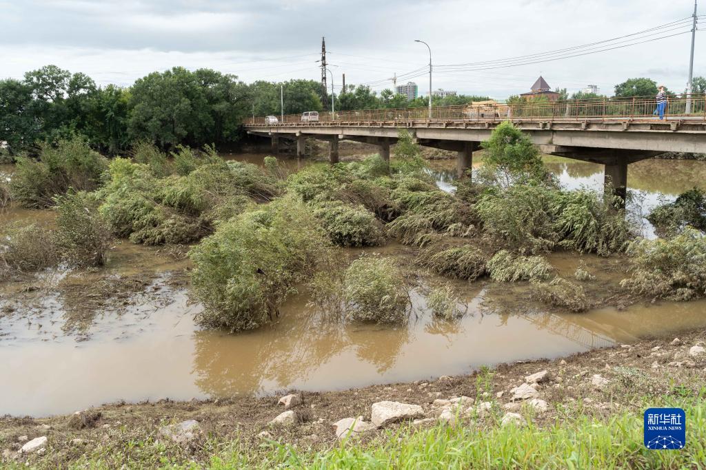 這是8月15日在俄羅斯烏蘇里斯克市拍攝的被洪水淹沒的河灘。