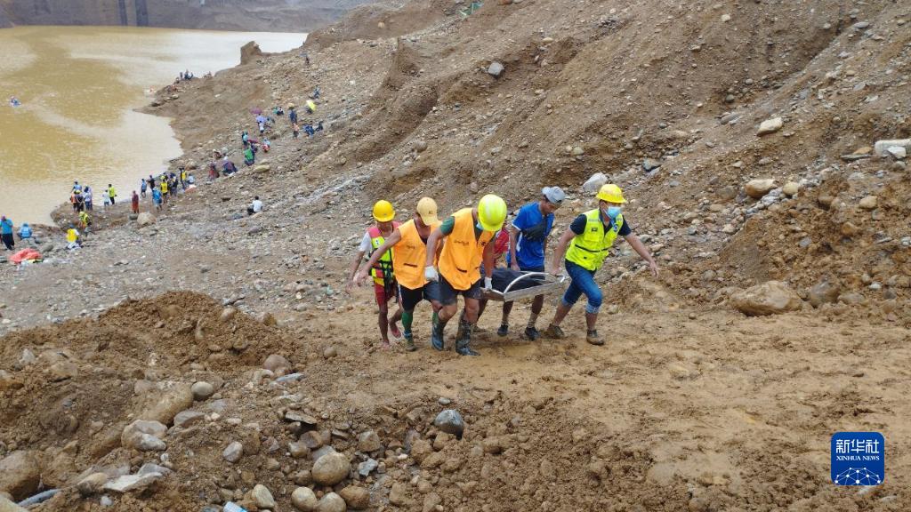 8月15日,在緬甸克欽邦帕甘鎮(zhèn),救援人員在玉石礦場坍塌事故現(xiàn)場搜救到一名遇難者。