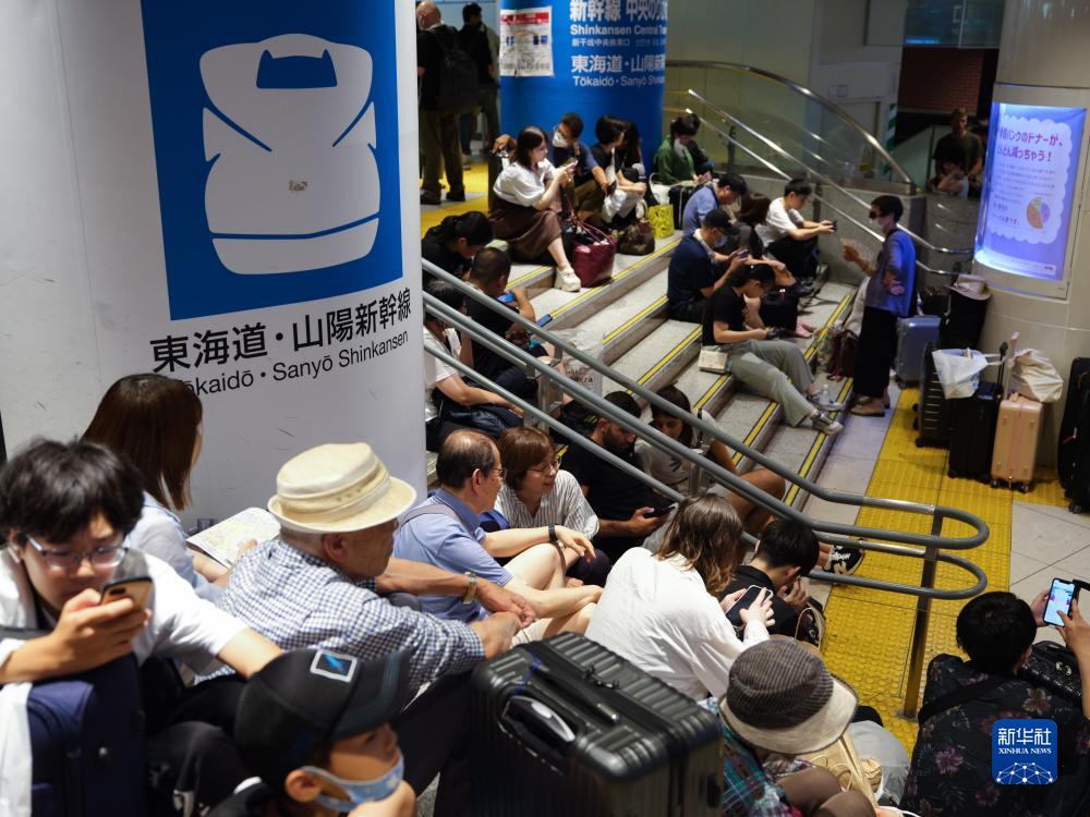 當日,受今年第7號臺風“蘭恩”影響,日本東海道新干線列車全線停運,導致大量旅客滯留。