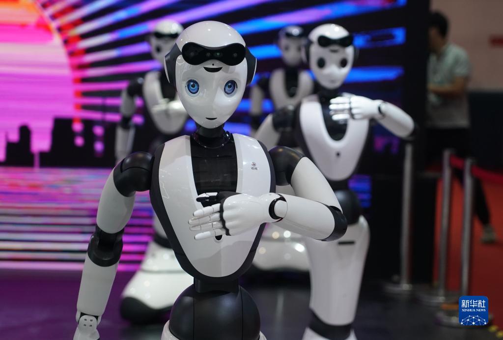 8月16日,人形機器人在2023世界機器人大會現場表演。